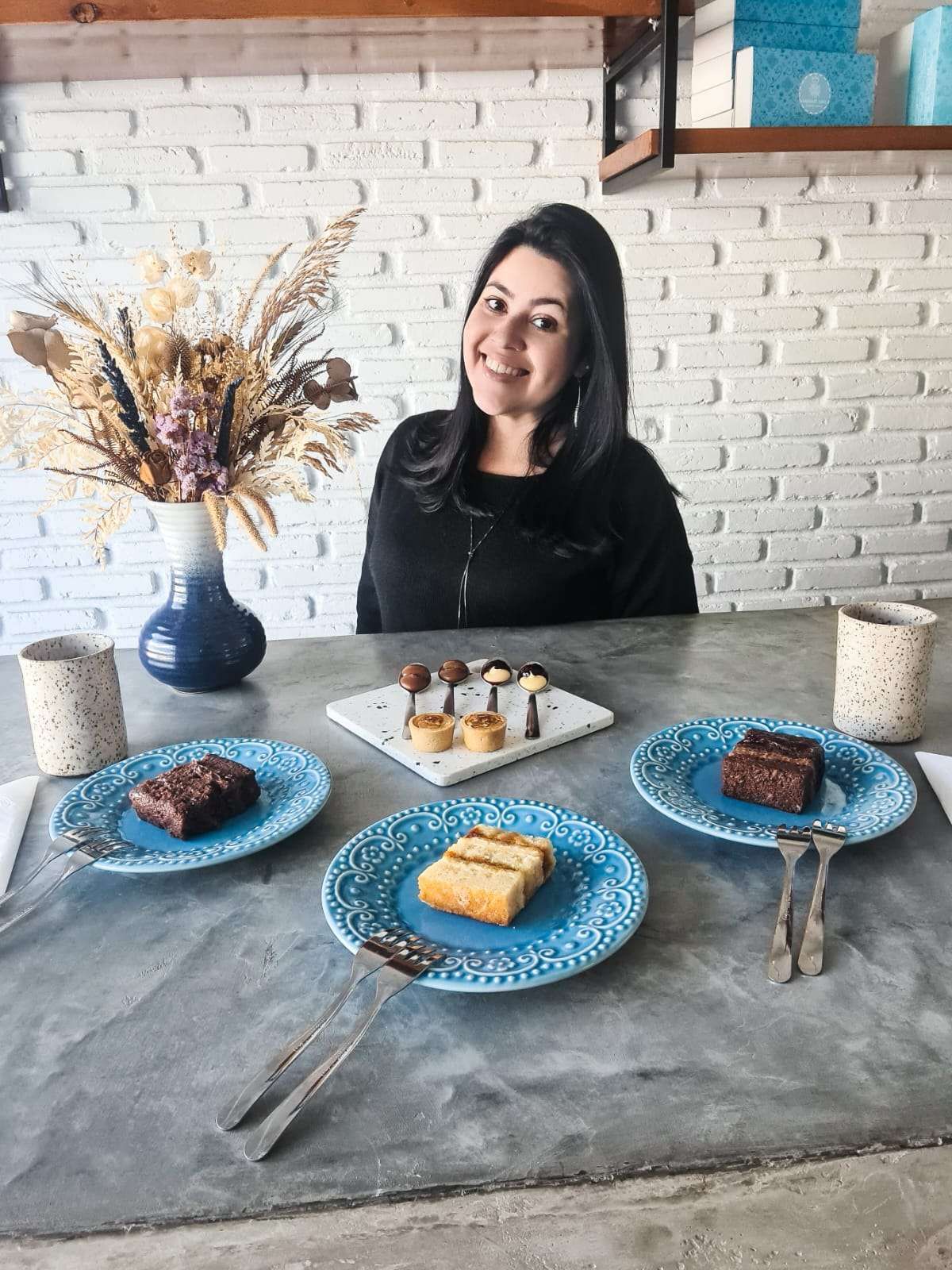 A confeitaria me tocou quando fiz faculdade de administração hoteleira, lá em 2001. Foi o meu primeiro contato com a área e me lembro de entrar naquelas geladeiras com as prateleiras cheias de bolos. Me sentia dentro de um filme, era mágico. Mas aí a vida tomou rumos diferentes e passei por muitos anos da minha vida trabalhando na área financeira. Em 2016, resolvi acordar esse sonho que estava adormecido dentro de mim e me reencontrei comigo mesma. Mergulhei nos estudos, nas pesquisas, nos testes e minha cozinha se tornou meu laboratório de trabalho.